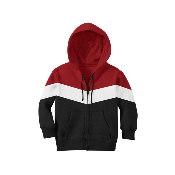 Unisex Kids Designer V Shaped Zipper Colour Block Hoodies. Maroon
