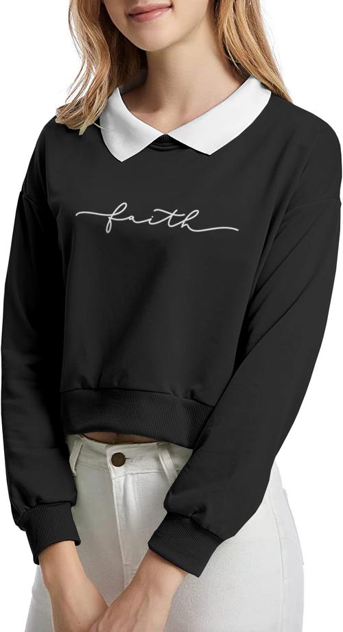Collar Crop Top Long Sleeve Pullover Kids Women