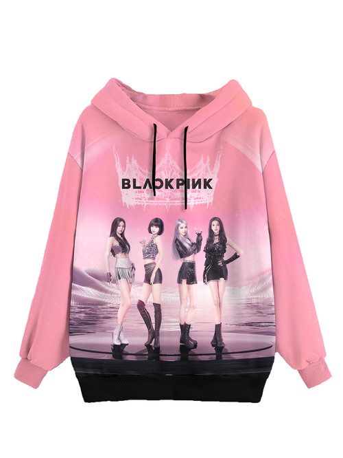 Blackpink Drawstring Hoodie Lisa Jennie Jisoo Rosé K-pop Long Sleeve Printing Hooded Sweatshirt Pull on 300 GSM Fleece